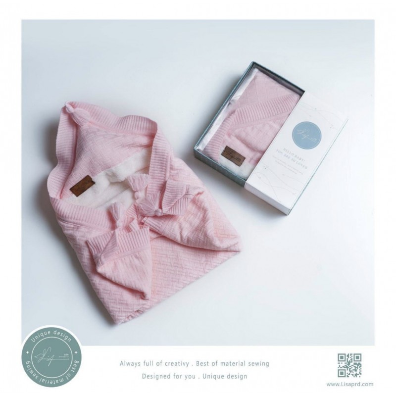 پتو بافت خزدار کلاه دار نوزادی صورتی لیزا Lisa