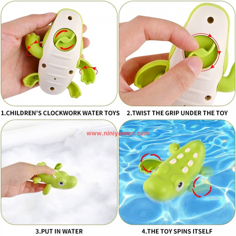 اسباب بازی کوکی حمام که با کوک کردن از زیر اسباب بازی به جهت عقربه های ساعت روی آب حرکت می کند