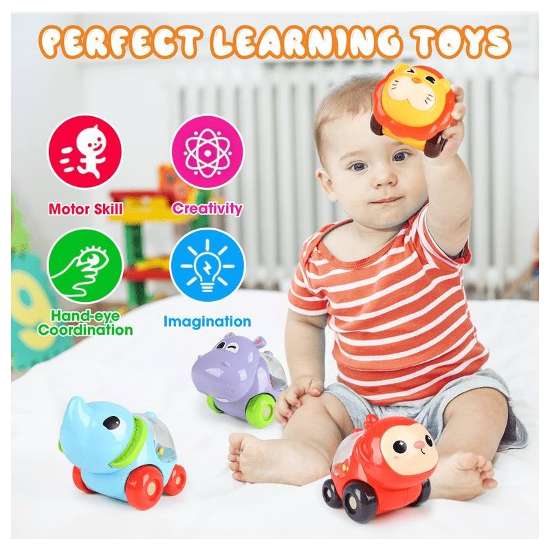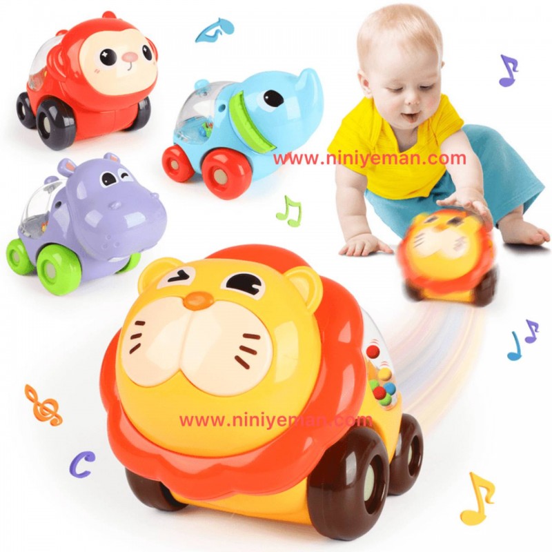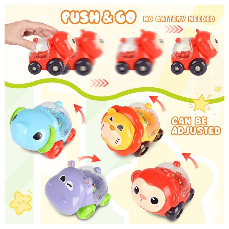 مجموعه‌ای رنگارنگ و سرگرم‌کننده از چهار ماشین حیوانی قدرتی مناسب برای کودکان بالای ۱۲ ماه. کمک به تقویت مهارت‌های حرکتی، شناختی و حسی در کودک با طراحی ایمن و سبک. دارای توپ جغجغه ای در شکم حیوانات که با حرکت ماشین آن شروع به حرکت میکنند