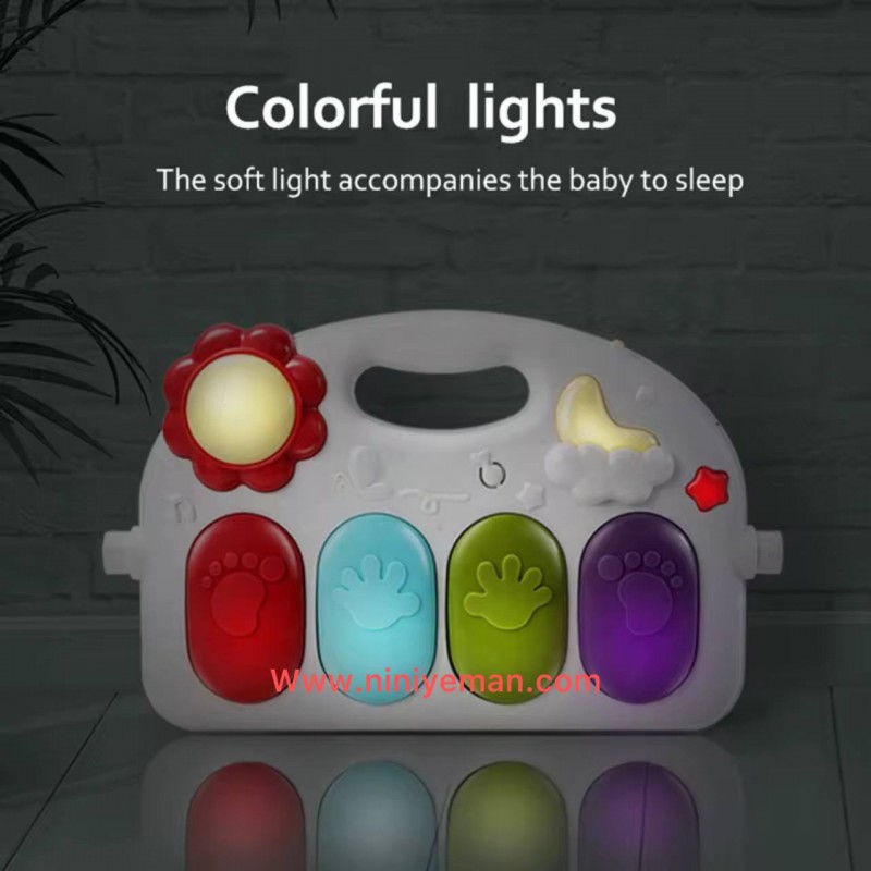 صفحه پیانو با نور و صدا: شامل کلیدهایی است که با ضربه زدن یا لگد زدن کودک، ملودی یا موسیقی مختلف پخش میکند.