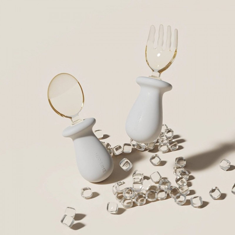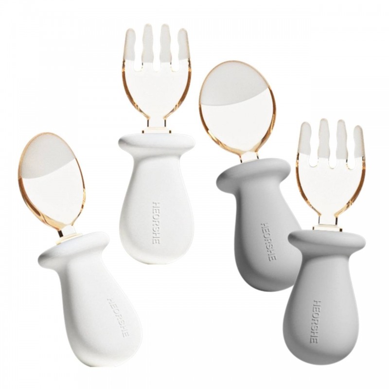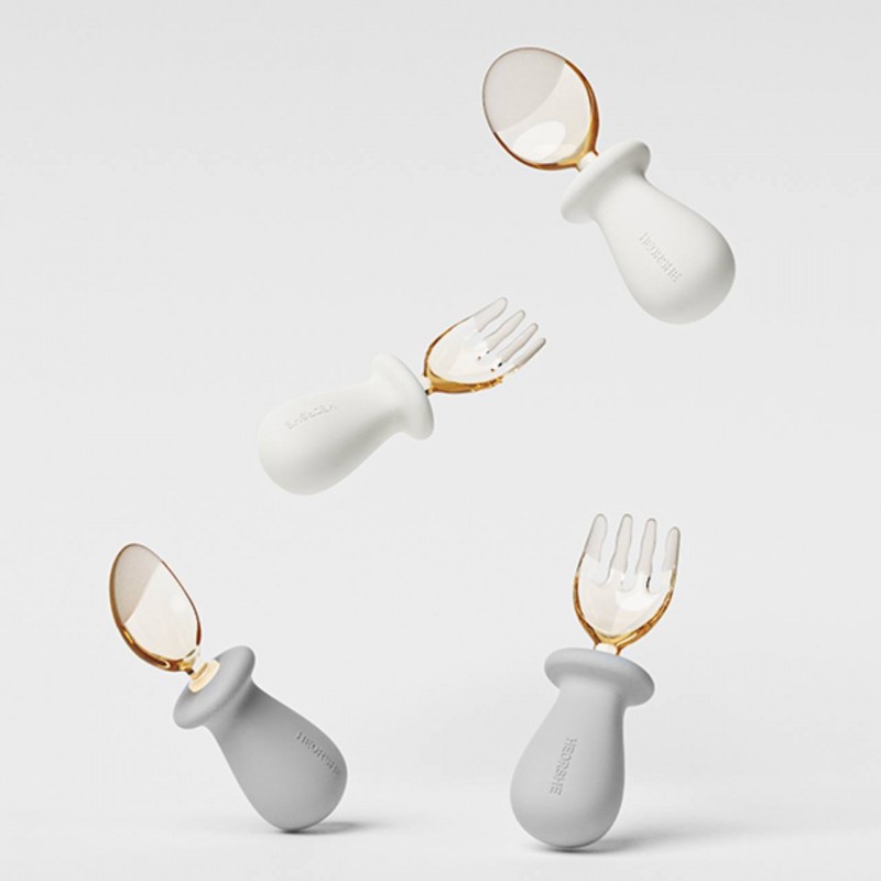ویژگیهای اصلی ست قاشق و چنگال سیلیکونی هی اور شی he or she در دو رنگ طوسی و سفید